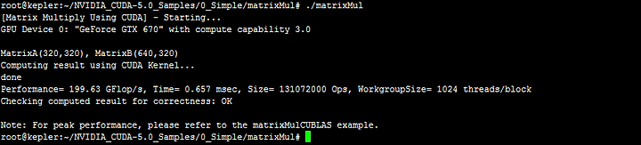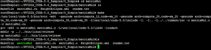 ]# cd /root/NVIDIA_CUDA-5.0_Samples/0_Simple/matrixMul